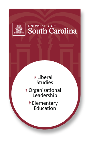 The University of South Carolina Palmetto College offers degree completion programs in partnership with USC Aiken, USC Beaufort, USC Columbia, and USC Upstate for students who have earned 45 – 60 credit hours and wish to complete their bachelor's degree online. Whether you completed your associate's, are a first-generation college student, are currently working, have a family, or want the flexibility of online classes, USC Palmetto College has something for everyone. With degrees in business, emerging media, nursing, education, psychology, communication, communications–public relations, and much more- you can start your career while earning your degree credentials.